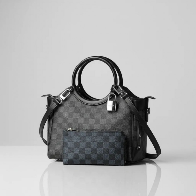 ادخلي عالم الأناقة مع هذه البدلة السوداء الأنيقة المرفقة بحقيبة يد مصمم أنيقة. مثالية لترك انطباع قوي في أي مناسبة.