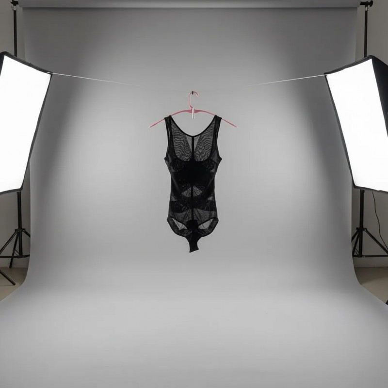 اكتشف الأناقة والجاذبية مع هذه البدلة الدانتيل السوداء الرائعة، المثالية لأي مناسبة.