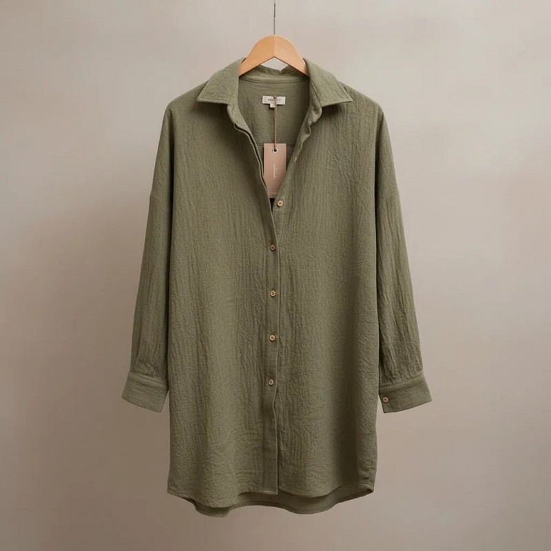 قم بترقية خزانة ملابسك مع هذا القميص الأخضر الزيتوني غير الرسمي المتعدد الاستخدامات، المثالي لأي مناسبة غير رسمية.