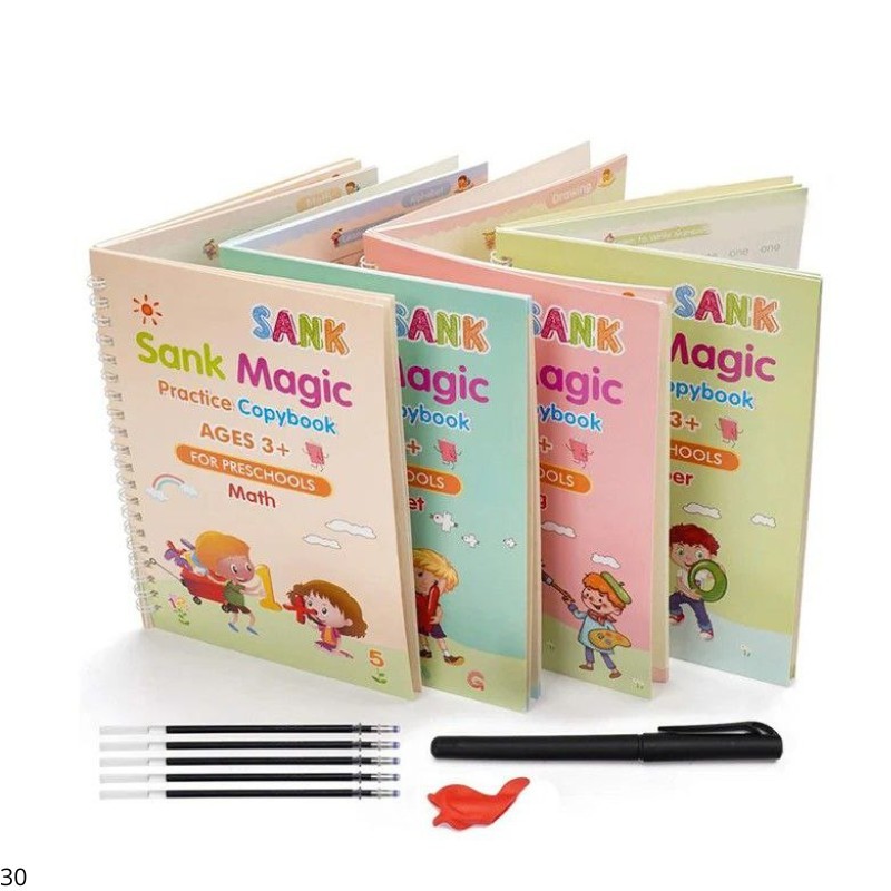 Introduce your preschooler to the world of learning with the Sank Magic Practice Copybook Set. This delightful set includes four books focused on alphabets, numbers, math, and drawing, each crafted to make education enjoyable and interactive. The magic pen allows reusable writing, ensuring endless practice and creativity. Perfectly designed for little hands, these copybooks help improve handwriting, cognitive skills, and artistic expression. Whether at home or in a classroom, this set is an essential tool for early childhood education.