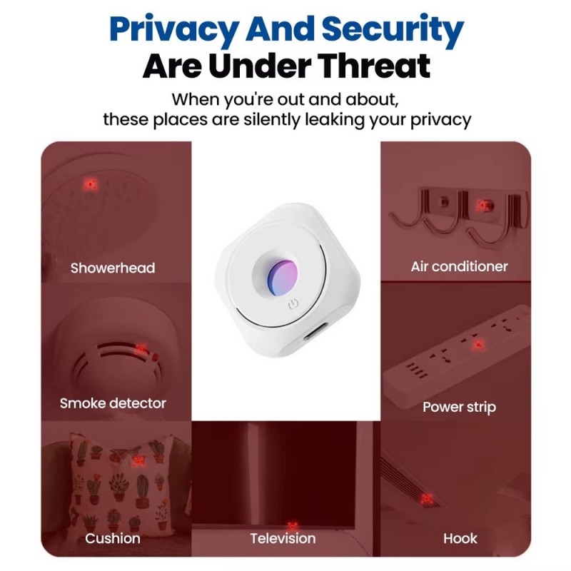 Introducing the Portable Camera Detector, your essential tool for personal privacy and security. Designed for on-the-go use, this compact device helps you quickly and effortlessly detect hidden cameras in any environment. Whether you're at a hotel, Airbnb, or office, this camera detector ensures your privacy is safeguarded. Its sleek design includes advanced detection technology that identifies camera lenses, providing you with immediate alerts. Lightweight and easy to carry, it fits conveniently in your pocket or bag, making it the perfect travel companion for security-conscious individuals.