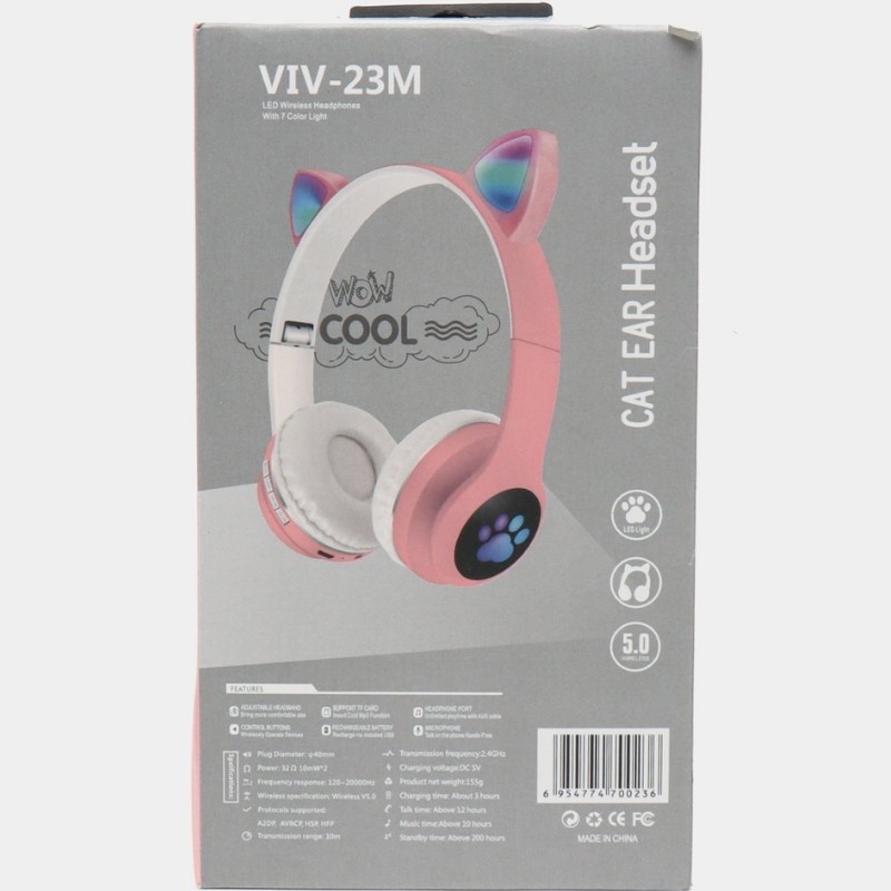 Unleash your inner feline with the VIV-23M Cat Ear Headset, designed to combine style and functionality. These adorable headphones feature LED lights in the cat ears, adding a fun and unique flair to your listening experience. Equipped with high-quality audio drivers, they deliver crisp sound and deep bass, making them perfect for gaming, music, or calls. The cushioned ear pads ensure comfort during extended use, while the adjustable headband provides a secure fit for all ages. Whether you're at home or on the go, the VIV-23M Cat Ear Headset is your perfect audio companion.