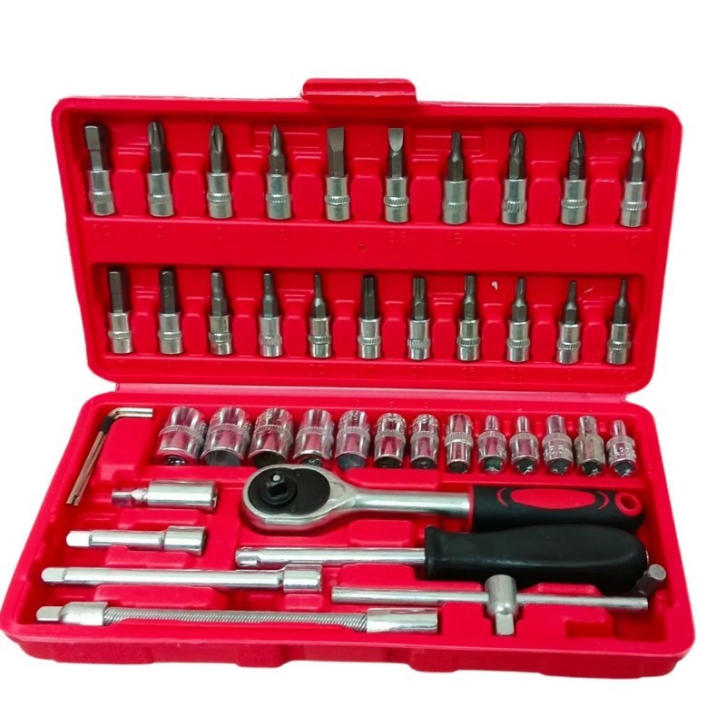 Comprehensive 46-piece socket wrench set ideal for DIY enthusiasts and professionals alike. Perfect for crafts, repairs, and general household tasks.