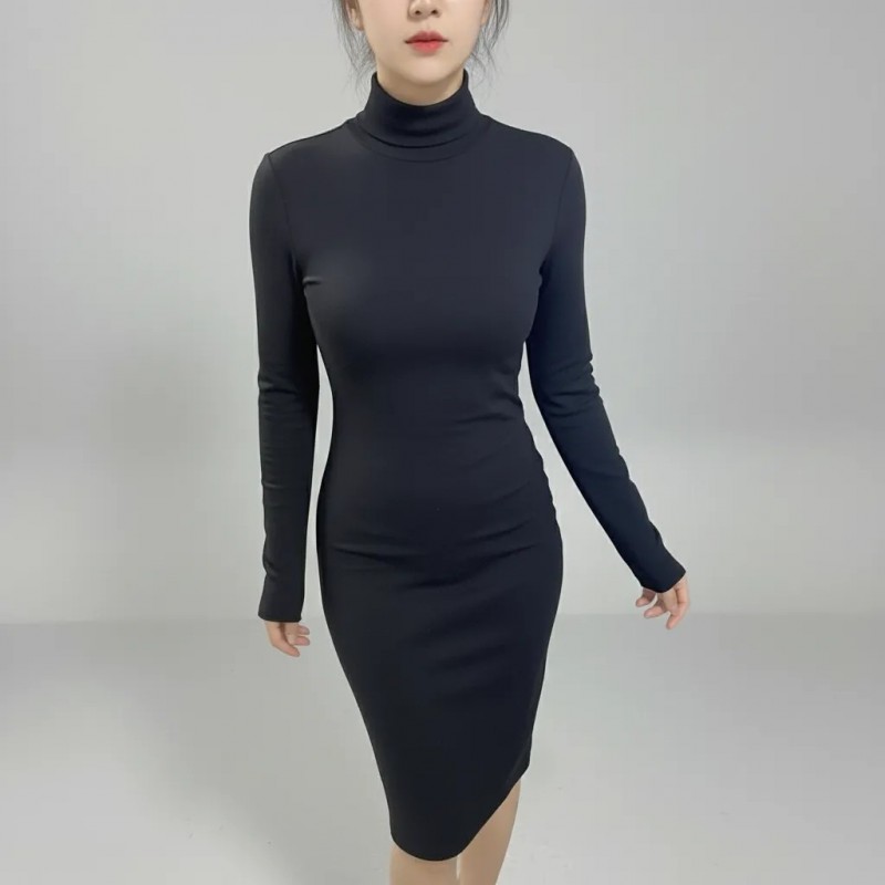 This elegant black dress features a form-fitting silhouette and long sleeves, making it perfect for both formal and casual events. Crafted from high-quality materials, it offers comfort and style, ensuring you look your best whether at the office or a night out.