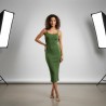 This sophisticated olive green midi dress is a must-have for any wardrobe. Designed with a flattering ribbed texture, it offers a perfect blend of comfort and style.