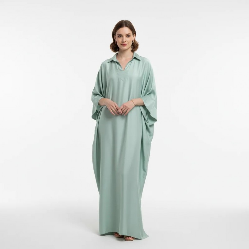 A stylish and comfortable blue kaftan dress, perfect for any occasion.