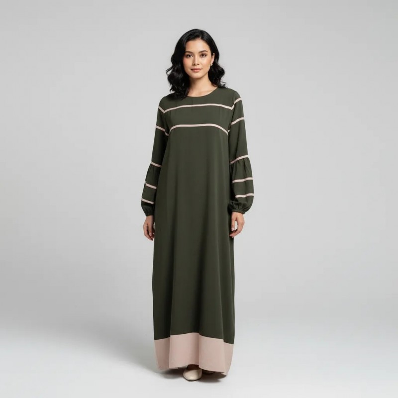 Step out in style with this exquisite long sleeve maxi dress, crafted to offer both comfort and elegance. The dress showcases a timeless design with subtle striped details across the bodice and sleeves, adding a touch of modern flair. Made from high-quality materials, it ensures a flattering fit and all-day comfort. Whether you're attending a special event or enjoying a casual day out, this dress is your go-to choice for effortless elegance.