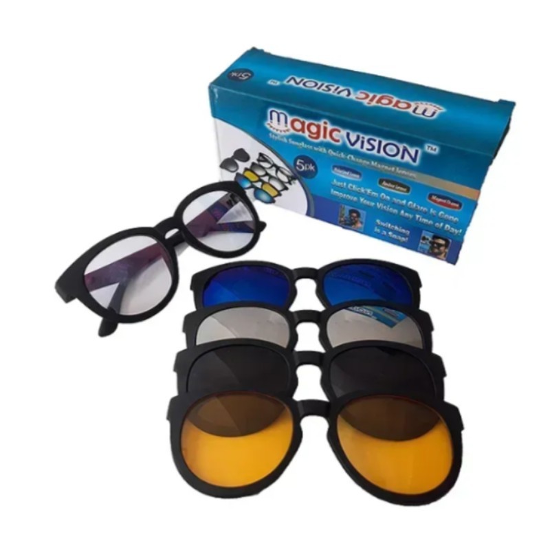 Améliorez votre style et votre vision avec l'ensemble de lunettes à lentilles multiples Magic Vision. Comprend des lentilles interchangeables pour chaque occasion.