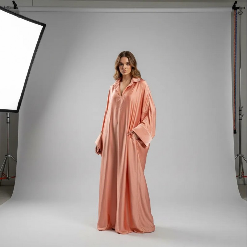 Une robe kaftan bleue élégante et confortable, parfaite pour toutes les occasions.