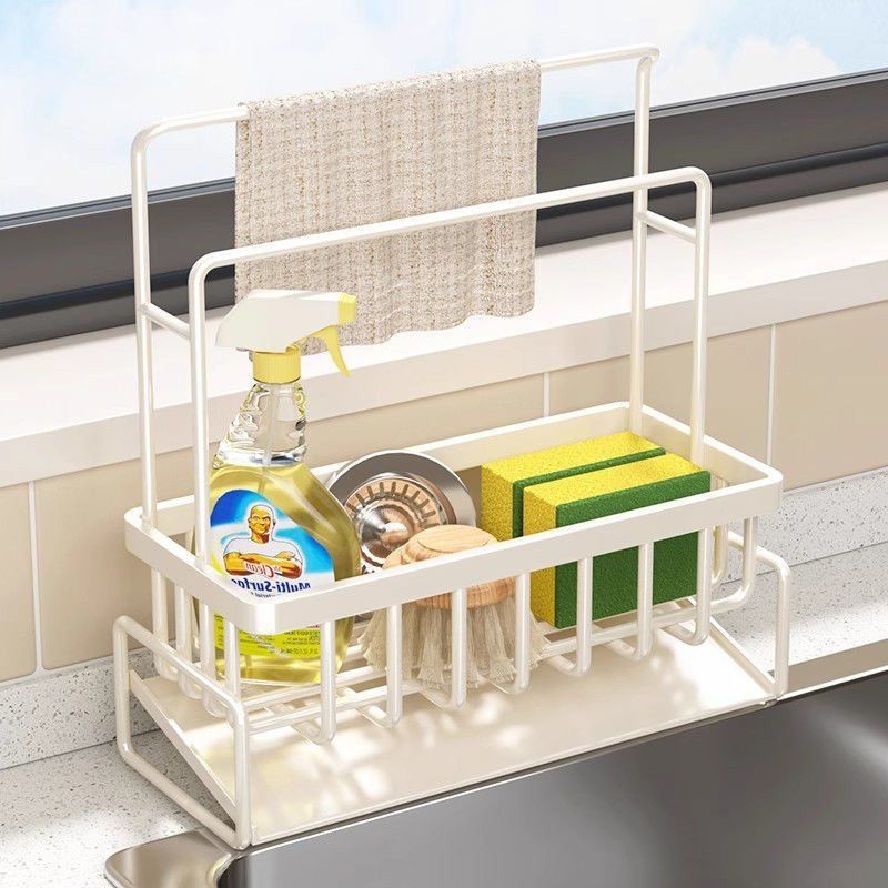 Cet organisateur de lavabo de cuisine multifonctionnel est parfait pour garder vos éponges, savon et serviettes bien rangés. Fabriqué avec des matériaux durables, il offre un espace suffisant pour tous vos essentiels de nettoyage, garantissant que votre cuisine reste propre et sans encombrement.